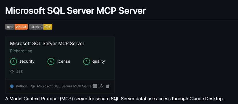A Model Context Protocol (MCP) server for Microsoft SQL Server that enables secure database interactions through a contr...